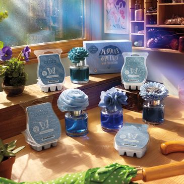 Grab your umbrella — the Puddles & Petals Collection is coming soon! New fragrances in both Scentsy Bars and Fragrance Flowers set the scene for a refreshing rain in four unique environments.